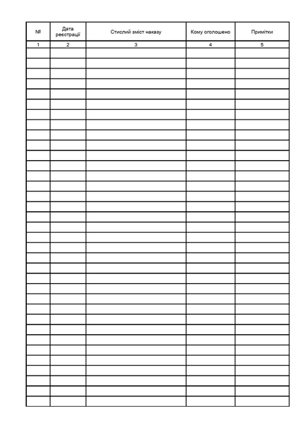 Журнали реєстрації наказів є незамінним інструментом для будь-якої організації, яка прагне підтримувати порядок у своїй документації. Ці журнали дозволяють систематично фіксувати всі видані накази, забезпечуючи їхню доступність та збереження. Завдяки їм, контроль за виконанням наказів стає більш ефективним, а процеси управління -- прозорішими.